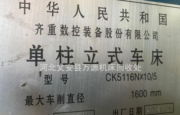 【大类】机床设备 【子类】立式车床 【名称】立式车床 【成色】9成新以上 ***参数描述*** 在位出售齐齐哈尔1.6米数控立车,卡盘直径1.4米,回转直径1.6米,加工高度1米,西门子802D系统,2016.接电干活,保证精度