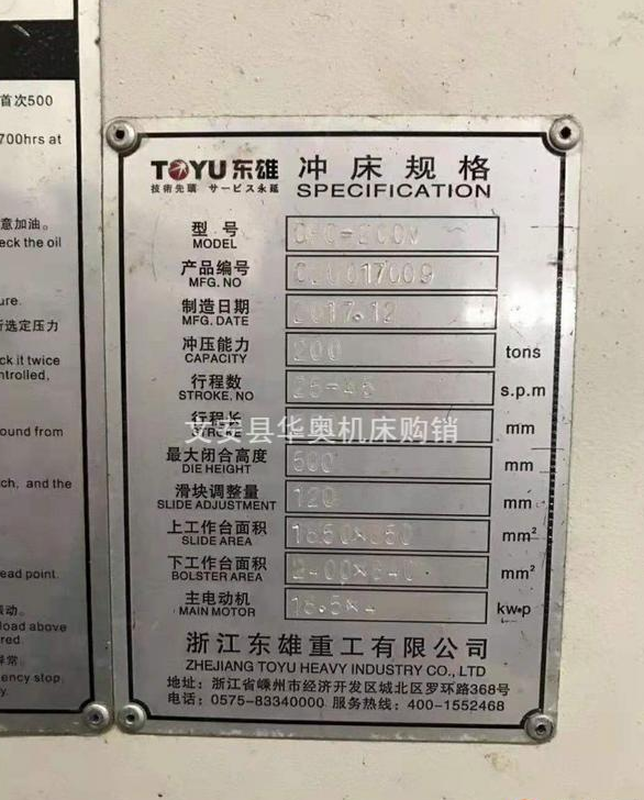 ※产品简述※ 冲压能力:200tons